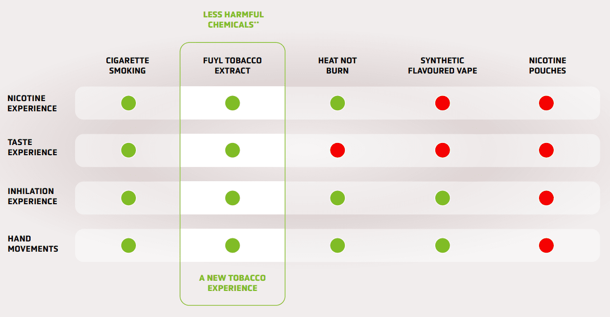 See how FUYL performs against other smoking alternatives.
